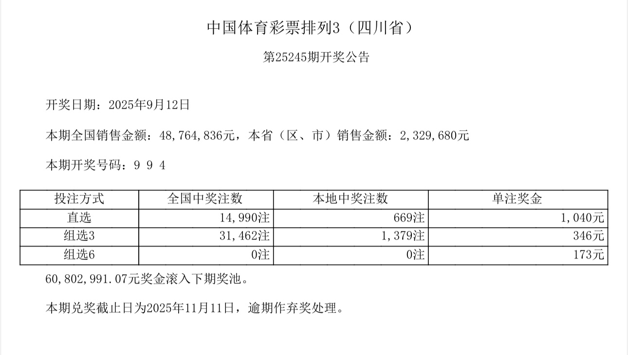 郑州股票配资公司 中国体育彩票9月12日开奖结果